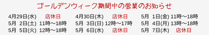 ■営業時間 平日:11:00~18:00、日曜・祝日:12:00~18:00