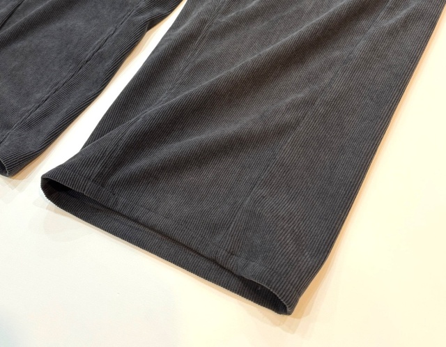 新型のバレル(樽のような膨らみのあるシルエット)パンツをコーデュロイで作りました。