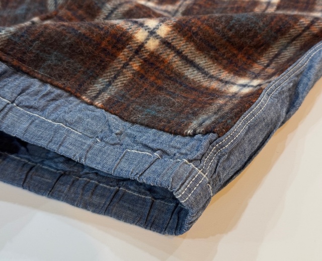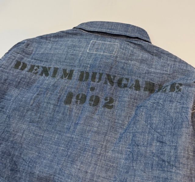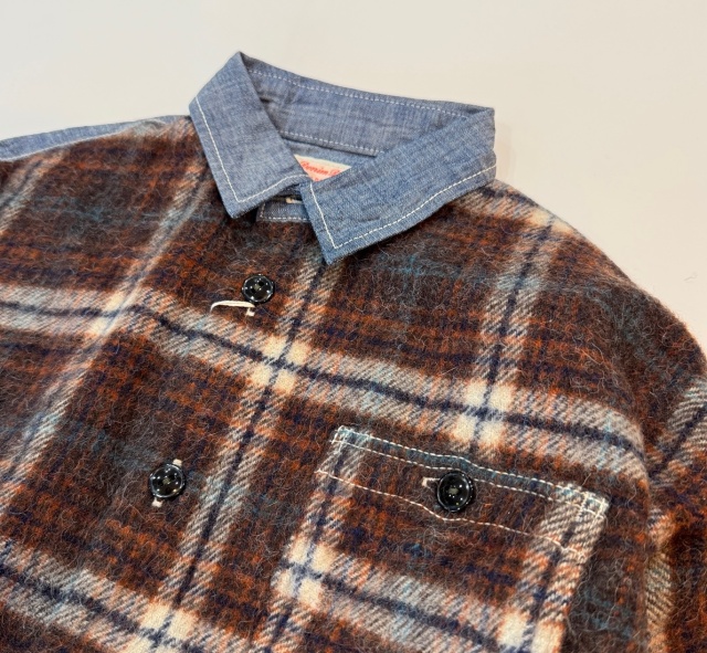 独特のシャリ感を持つダンガリーの前に起毛感のあるチェックを付けた前後で見え方の違うシャツです。