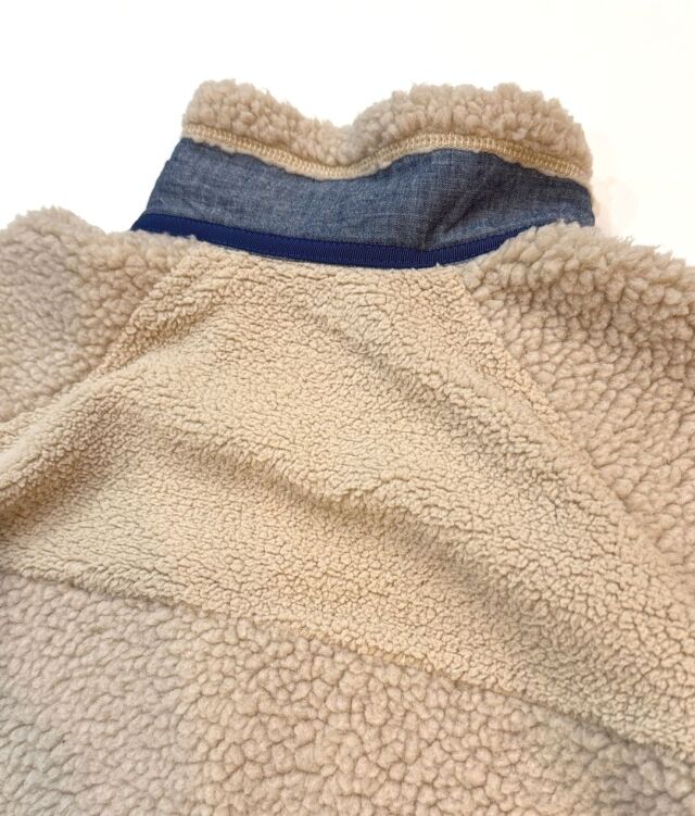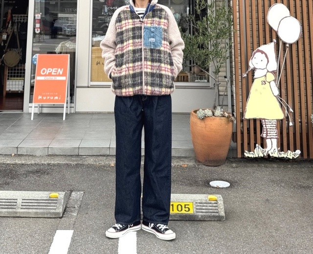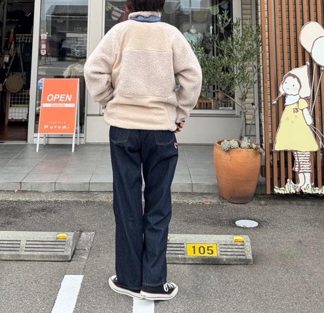 胸に加工感のあるデニムのポケットが付き一お洒落さと機能性を兼ね備えた一味違うボアフリースジャケットです。