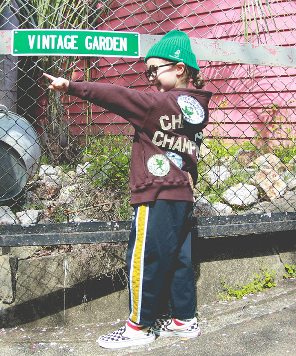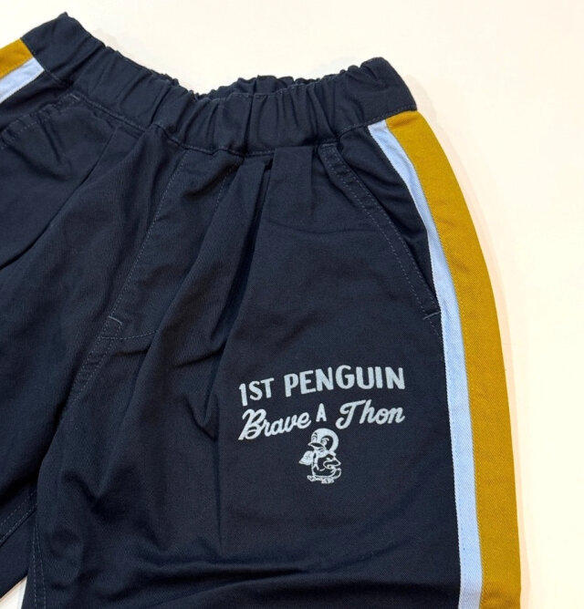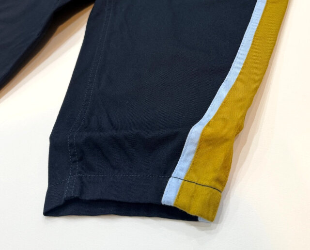 アメリカ陸軍のチノ・パンツをベースボールパンツ風に脇に配色の切り替えを足し、チームキャラクター(架空)をプリント。