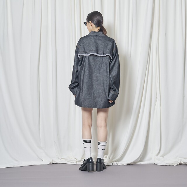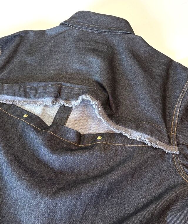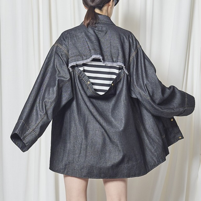 後ろはスナップボタンで開くデザインとなっており、インナーを見せても◎