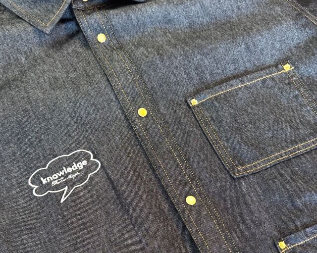 前身頃には吹き出しの「knowledge」の刺繍がアクセントになっております。