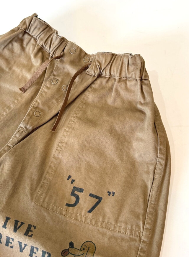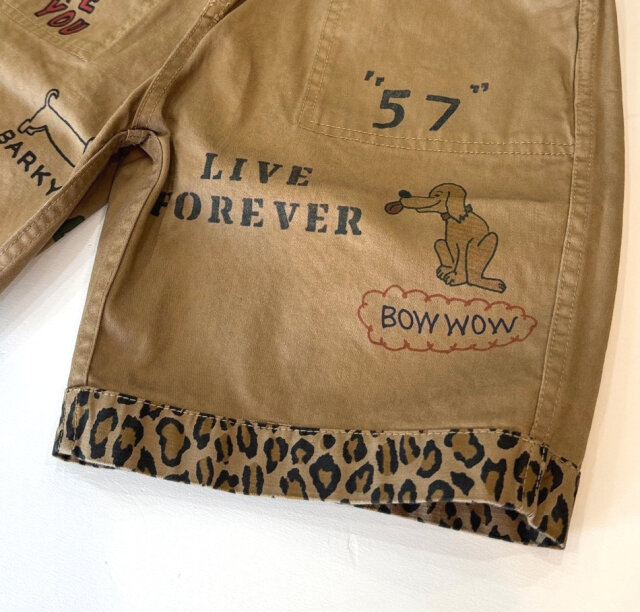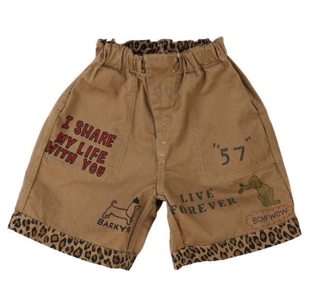 表は柄で裏は前後に落書きが入ったリバーシブルショートパンツ。