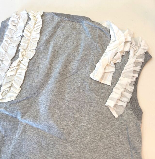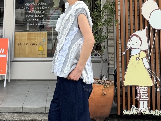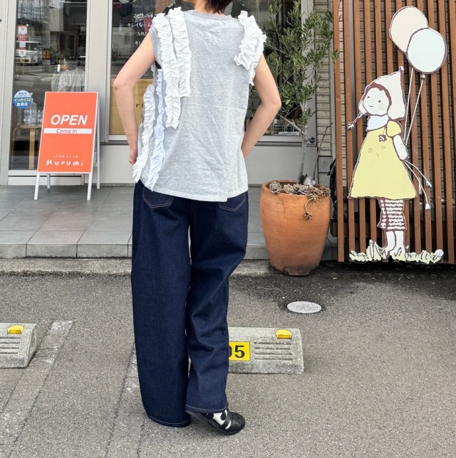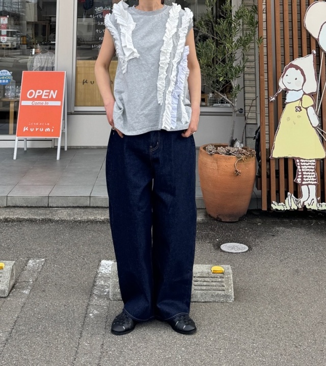 ビンテージ感のあるGTH定番の天竺にホワイトデニムを基調としたフリルをあしらいました。