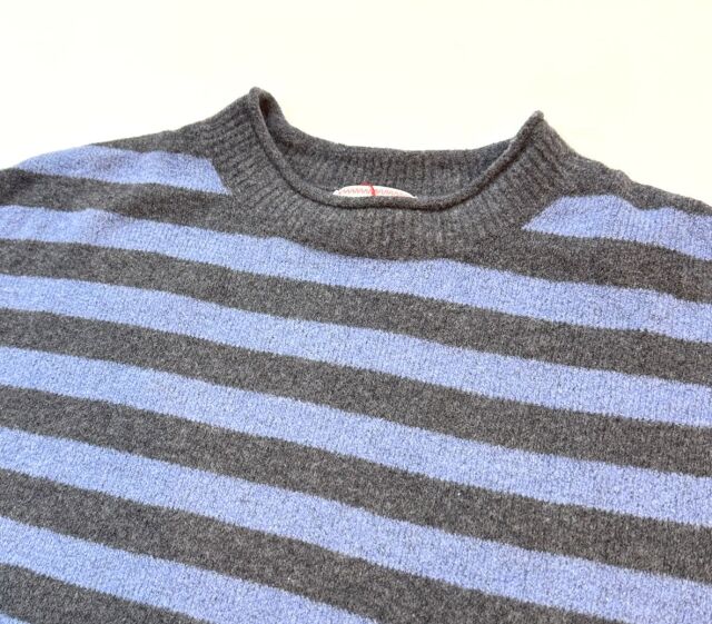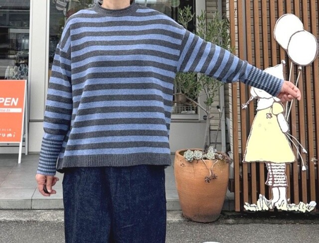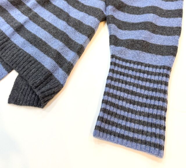 身頃と袖口のリブのボーダーピッチにアクセントをつけたところがデザインのポイントです♪