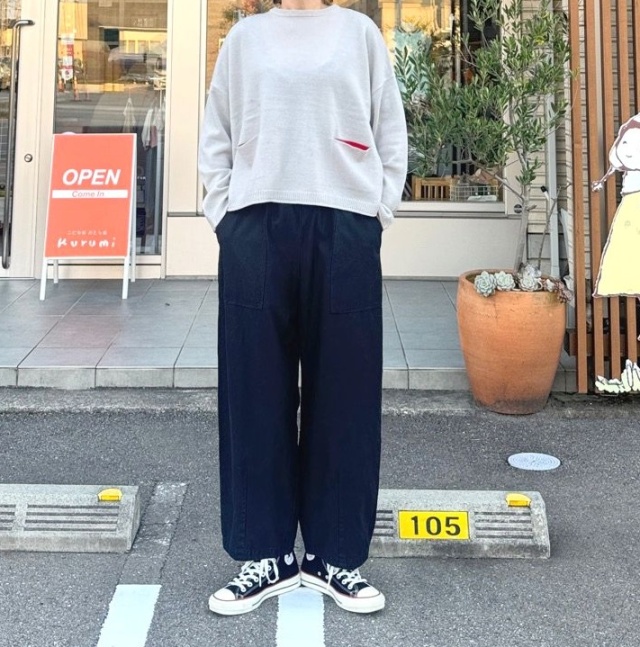 抜群の保温性と軽さを兼ね備えたウール100%の糸を使用した、チラリ配色ポケット付きワイドプルオーバーです。