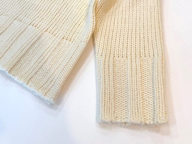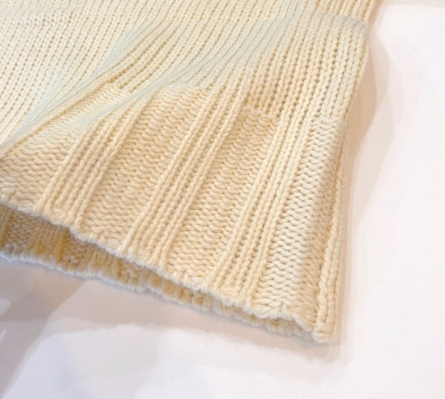 冬ならではの温もりのある太っちょな糸を使用し、ざっくりと編み上げたボートネックプルオーバーです。