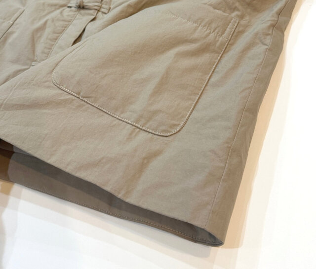 細番手の糸を高密度に織った適度なハリ感がある洗いがかったダンプ素材を表面に使用し、裏地にキルティング加工を施した中綿チャイナジャケットです。