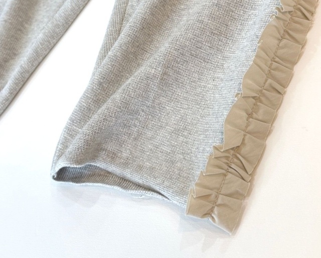 サイドにはオトナに似合うほんのり甘い布帛の切りっぱなしのフリルをつけてみましたよ。