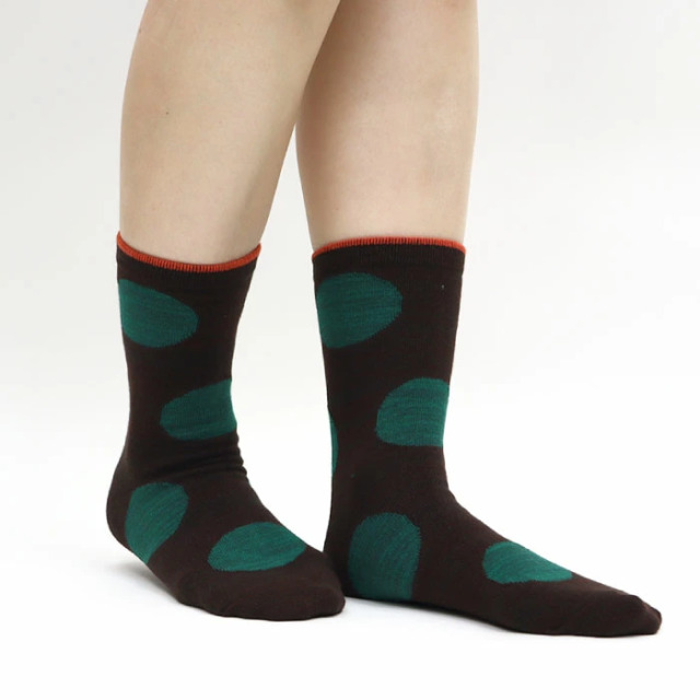 落ち着いたカラーに大きめドットが可愛い、ニュアンスドットクルーソックス3足組。