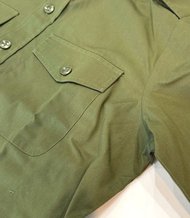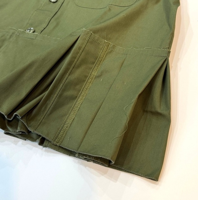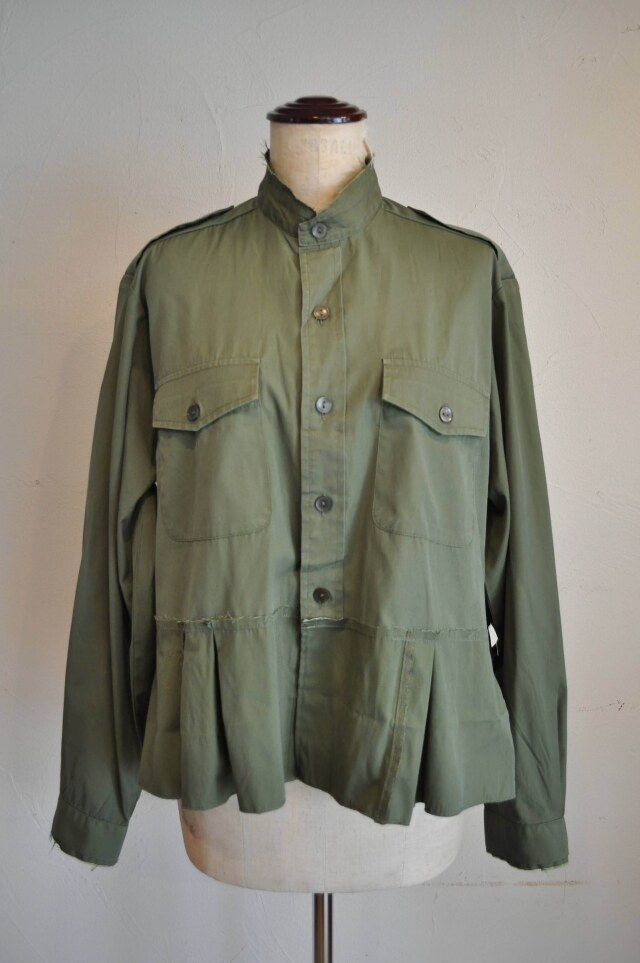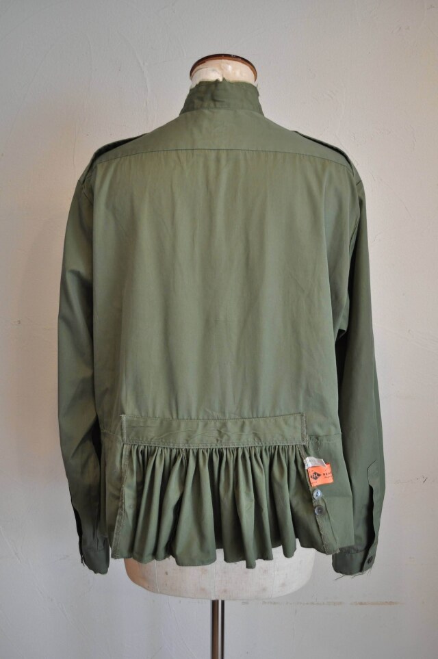 イギリス製フィールドシャツをリメイクした、武骨さと女性らしさを両立させるショート丈シャツです。