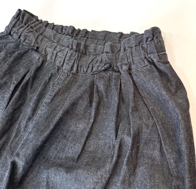 ライトオンスデニムならではの素材の薄さを活かしたギャザーたっぷりのデザインになっています。