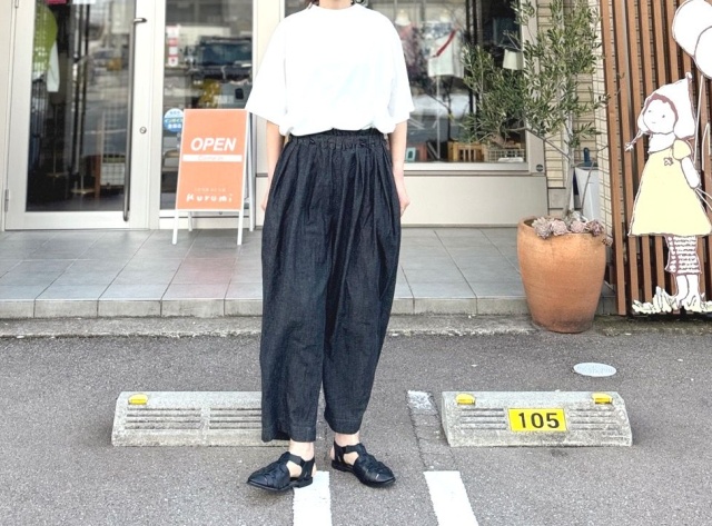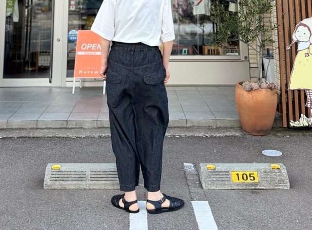 6ozの綿麻デニム生地の薄手デニムパンツ。
