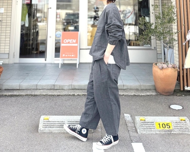 | 製品名: | prit リネンコットン 交織平織 ピグメント加工 タックバギーパンツ(スミクロ) |