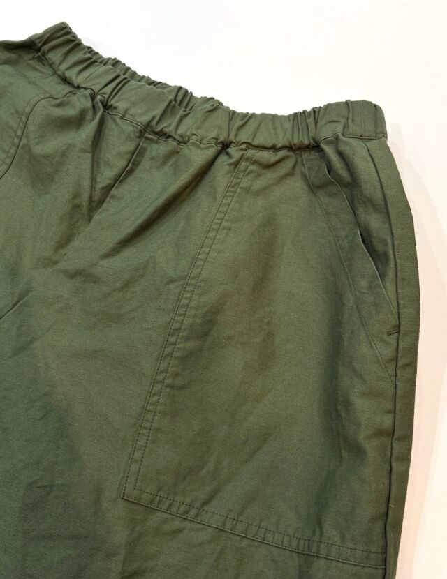 | 製品名: | prit コットンリネンライト バックサテン 裾ダーツ ベイカーパンツ(オリーブ) |
