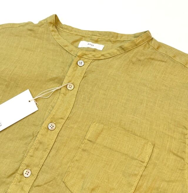 上質なフレンチリネンを使用した、軽やかで品のあるバンドカラーシャツ。