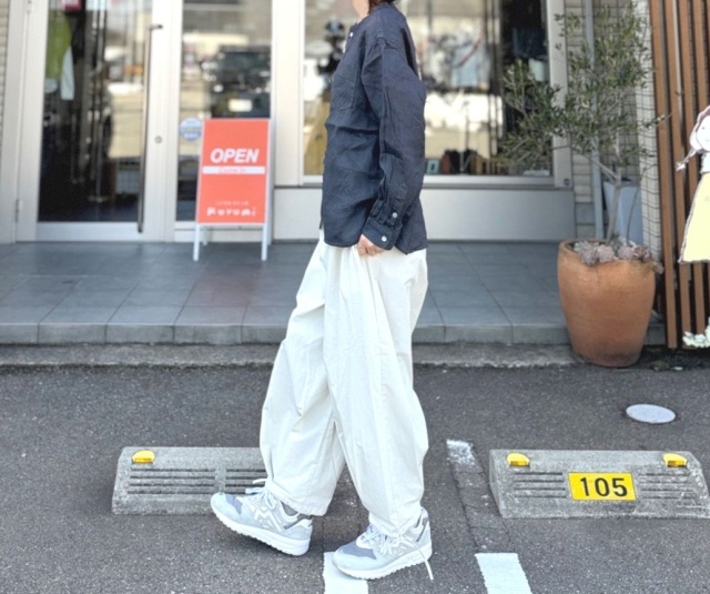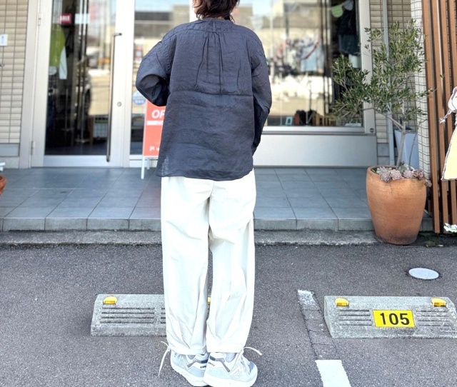 着るほどにやわらかく馴染み、麻100%ならではの経年変化も楽しめる一枚です。