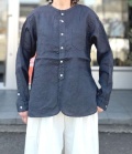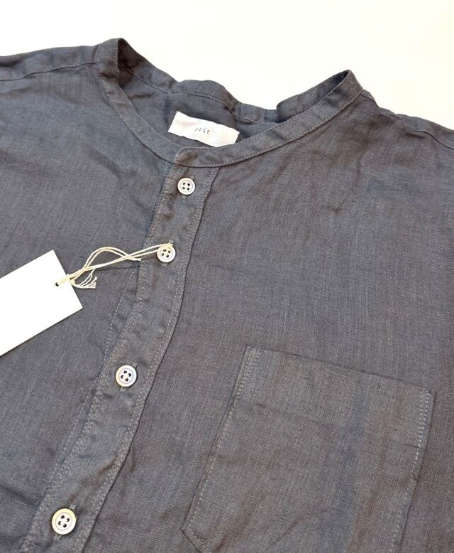 製品名: prit 60/1フレンチリネン バンドカラー ワイドシャツ(スミクロ)