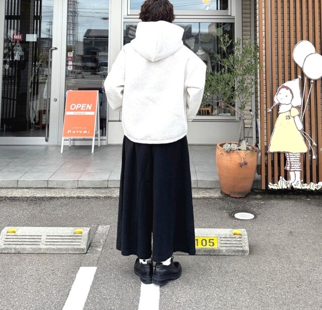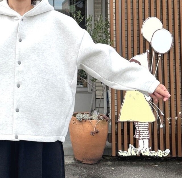 肉感はありながらも軽い着心地で、オーバーサイズ感が可愛く、さっと羽織るように着ていただくのがお勧めです。