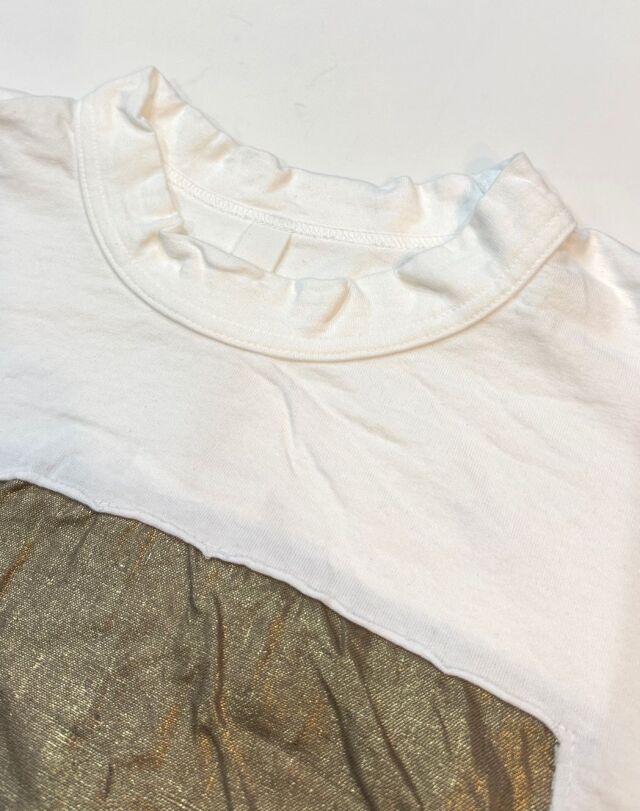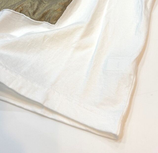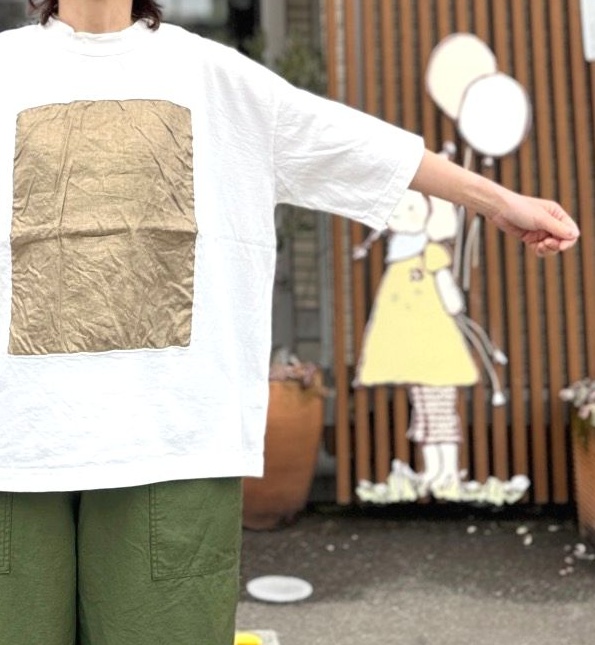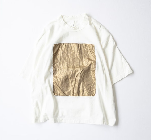 | 製品名: | prit 17/1空紡天竺×40/1リネン箔プリント 5分袖フレーム Tシャツ(シロ×ゴールド) |