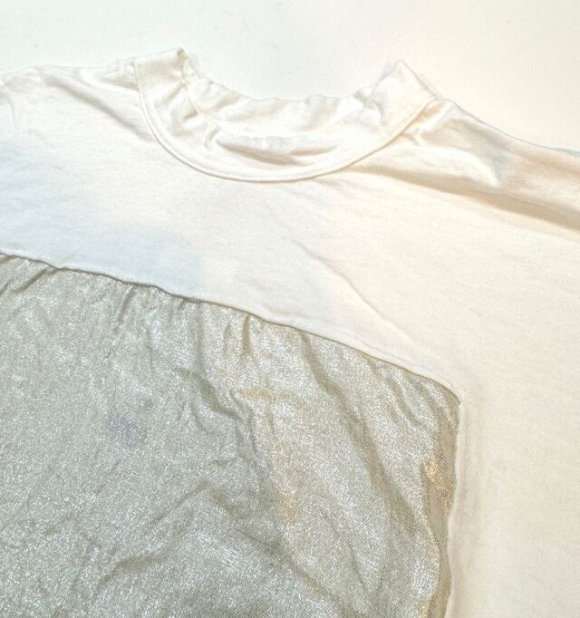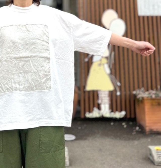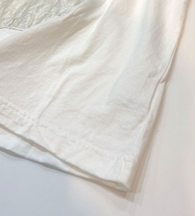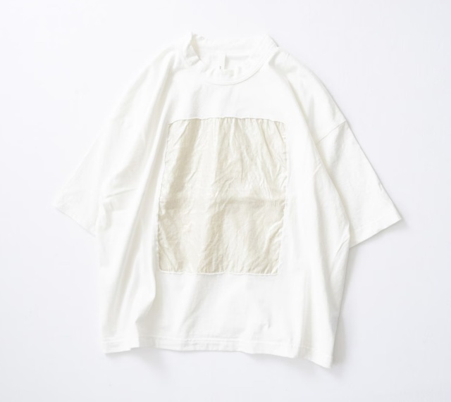 | 製品名: | prit 17/1空紡天竺×40/1リネン箔プリント 5分袖フレーム Tシャツ(シロ×シルバー) |
