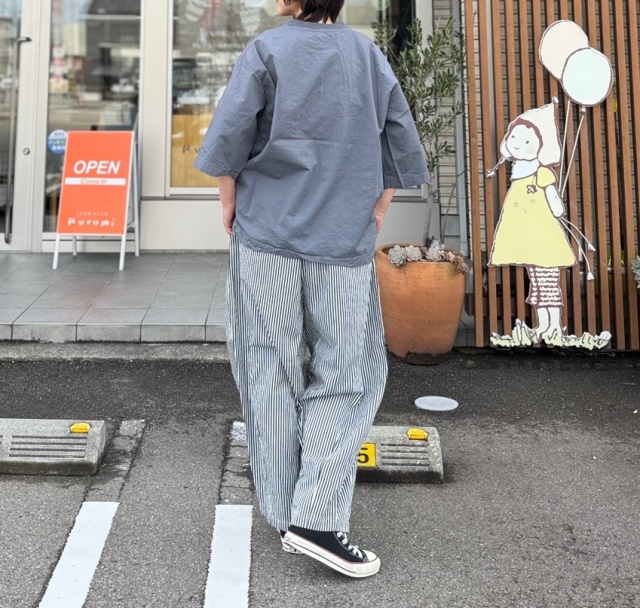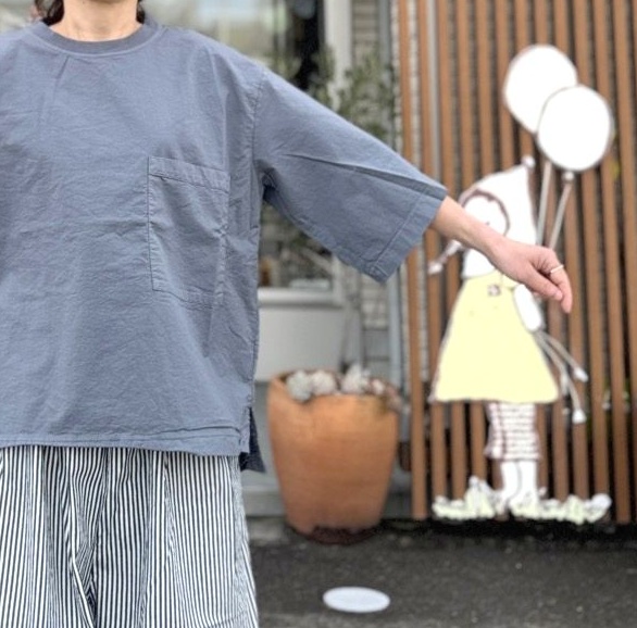 シルエット・袖が共にゆったりしており、胸元のビッグポケットがポイントになります。