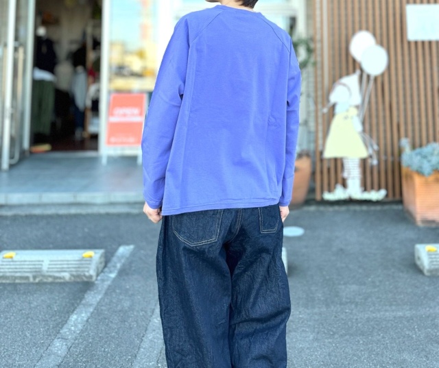 フロントにプリントが施された、ラグランスリーブの長袖Teeです。