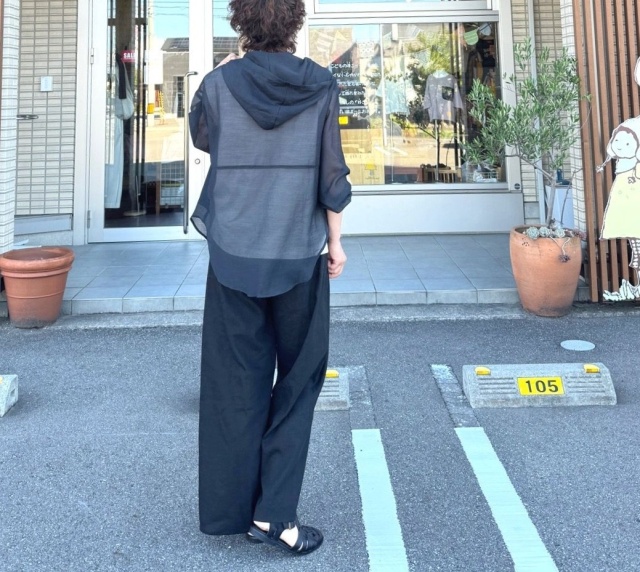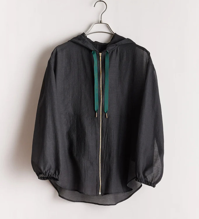さっとシャツ感覚で羽織れるシアー フードブルゾン。