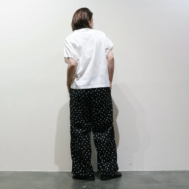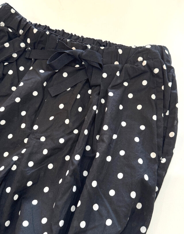 柔らかな肌触りの80ローンのランダムドット素材を使用したイージーパンツです。