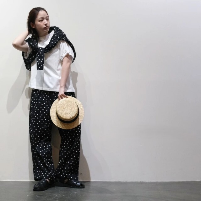 | 製品名: | vent blanc 80ローン ランダム ボルカドット セミワイド パンツ(ブラック×オフホワイト) |