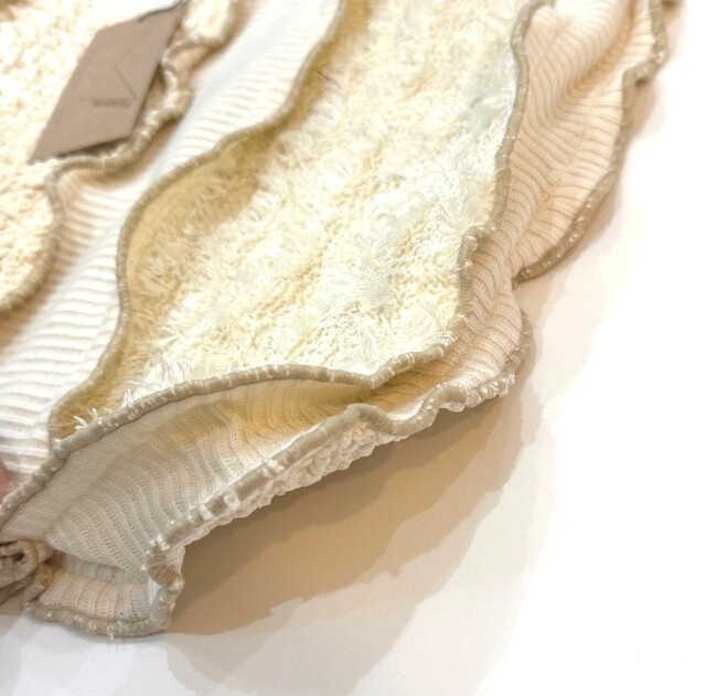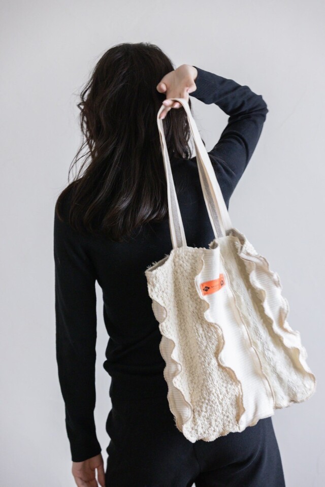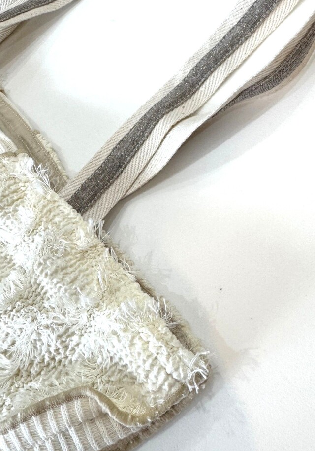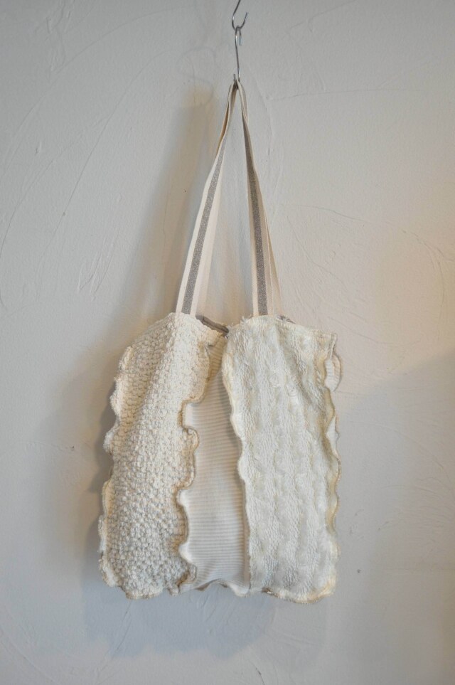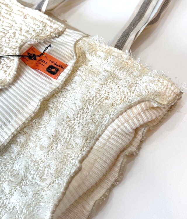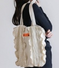 様々な表情のニットの組み合わせと、メローのなみなみが可愛いニットバッグです。